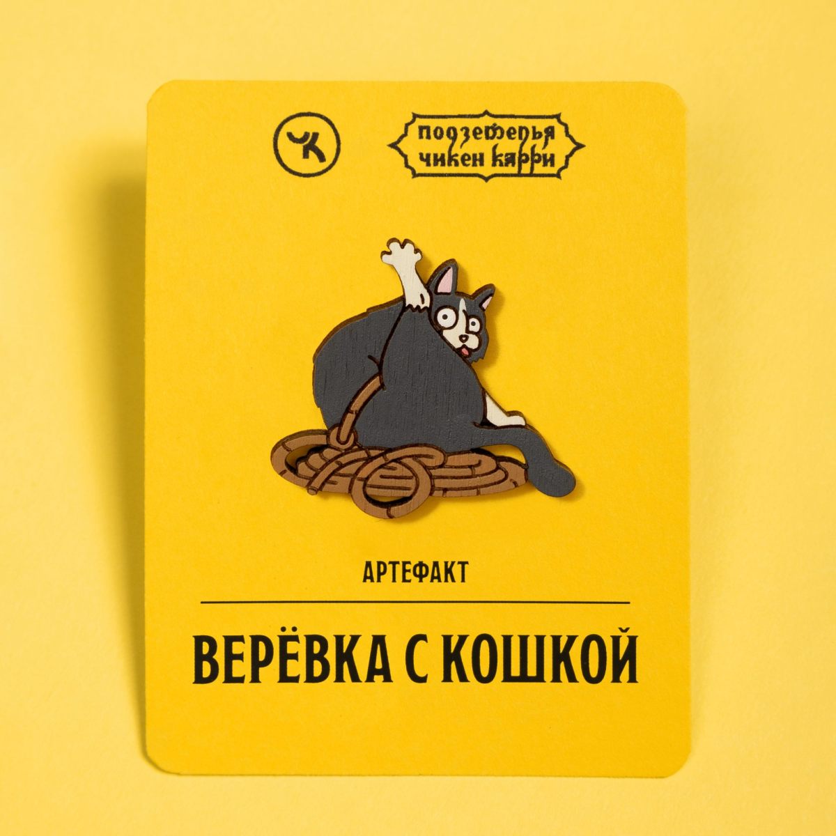 Деревянный значок с застежкой-булавкой.