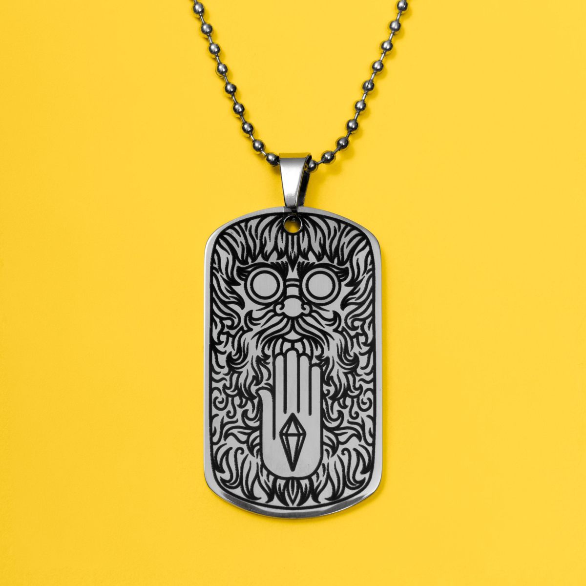 Идёт в комплекте с цепочкой и металлическим боксом с нанесением букв ЧК.